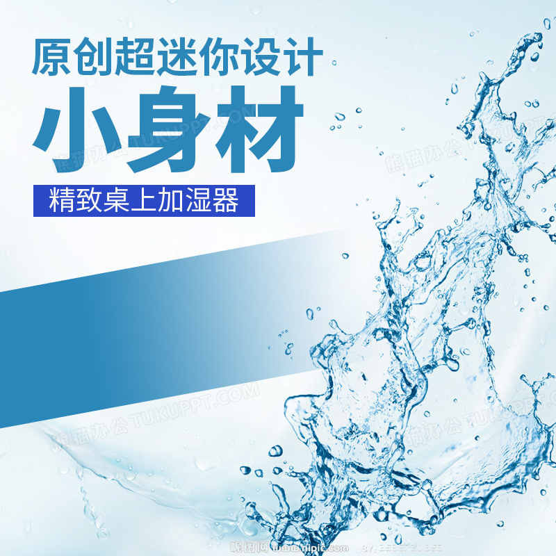 本作品内容为蓝色飞溅水花加湿器PSD分层主图背景素材, 格式为 psd, 图片尺寸为800 x 800, 作品中背景图片无需修改, 源文件无水印,可以直接使用, 欢迎使用熊猫办公。 如认为平台内容涉嫌侵权,可通过邮件:tousu@tukuppt.com提出书面通知,我们将及时处理。