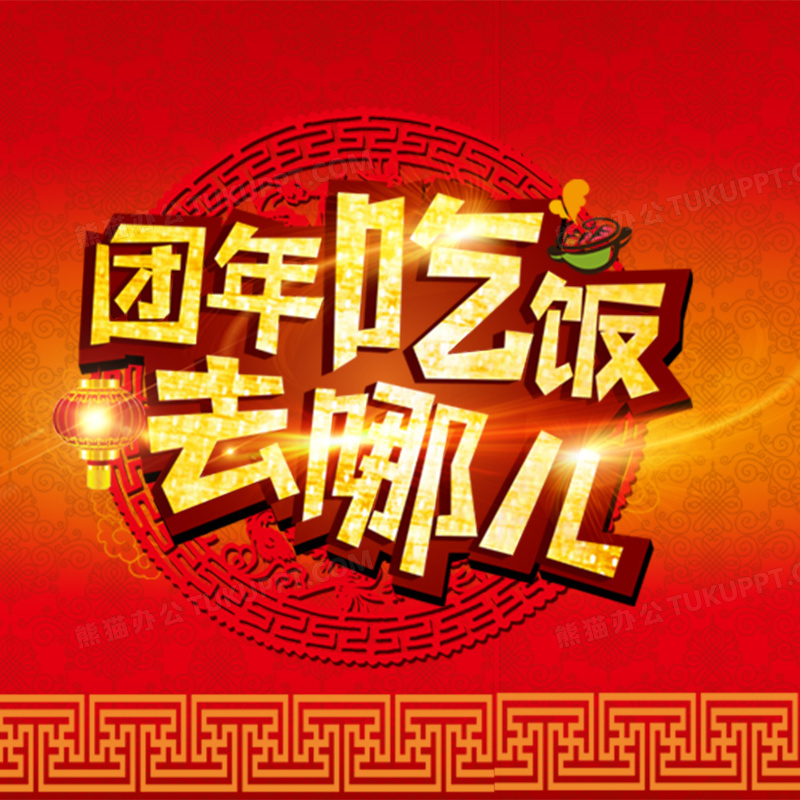 本作品内容为团年饭去哪里儿, 格式为 psd, 图片尺寸为800 x 800, 作品中背景图片无需修改, 源文件无水印,可以直接使用, 欢迎使用熊猫办公。 如认为平台内容涉嫌侵权,可通过邮件:tousu@tukuppt.com提出书面通知,我们将及时处理。