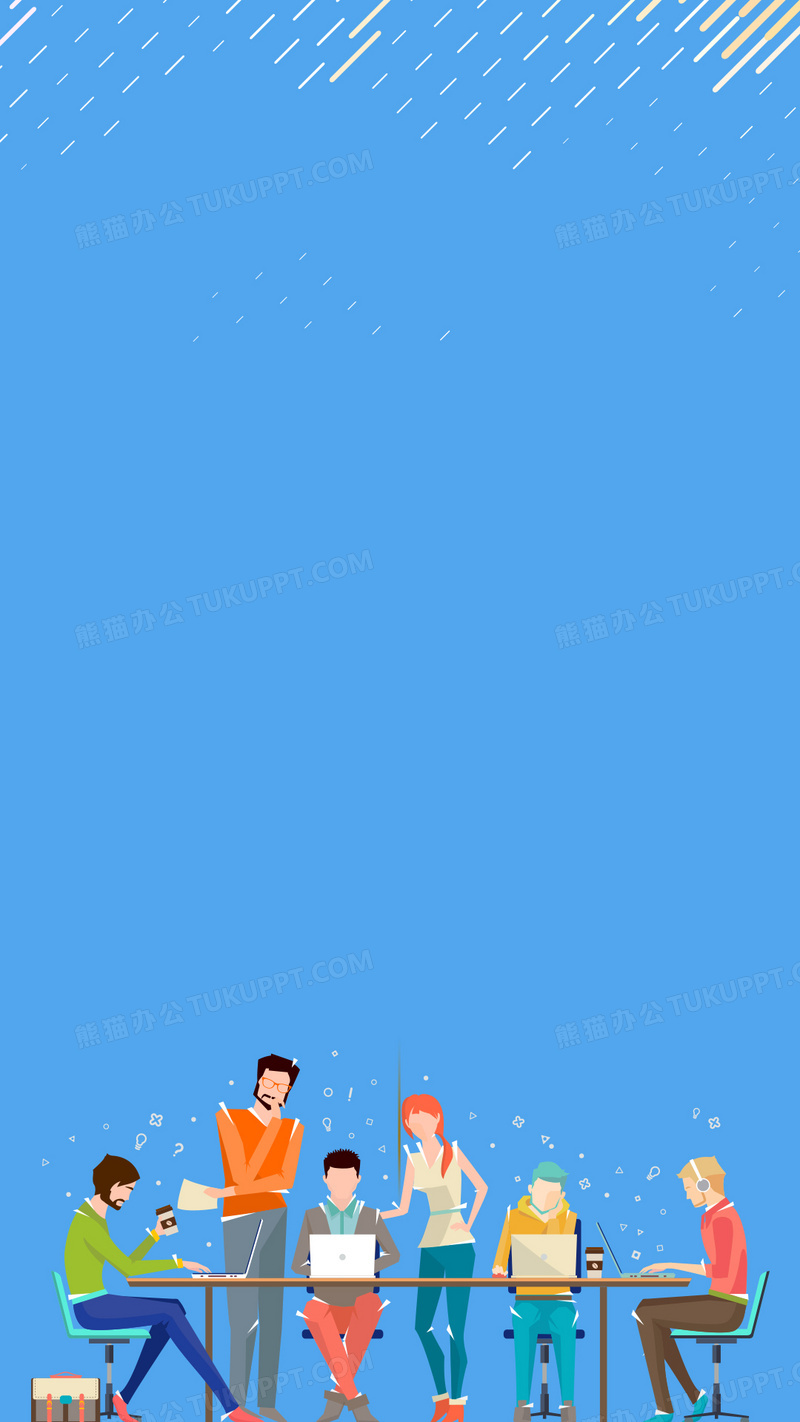 本作品内容为蓝色扁平卡通人物背景, 格式为 psd, 图片尺寸为1080 x 1920, 作品中背景图片无需修改, 源文件无水印,可以直接使用, 欢迎使用熊猫办公。 如认为平台内容涉嫌侵权,可通过邮件:tousu@tukuppt.com提出书面通知,我们将及时处理。